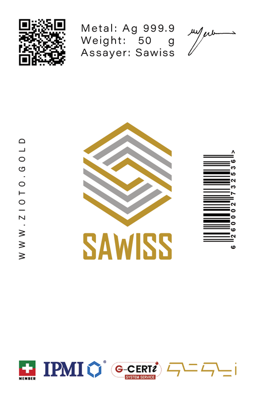 شمش نقره ۱ اونس عیار ۹۹۹/۹ زیوتو